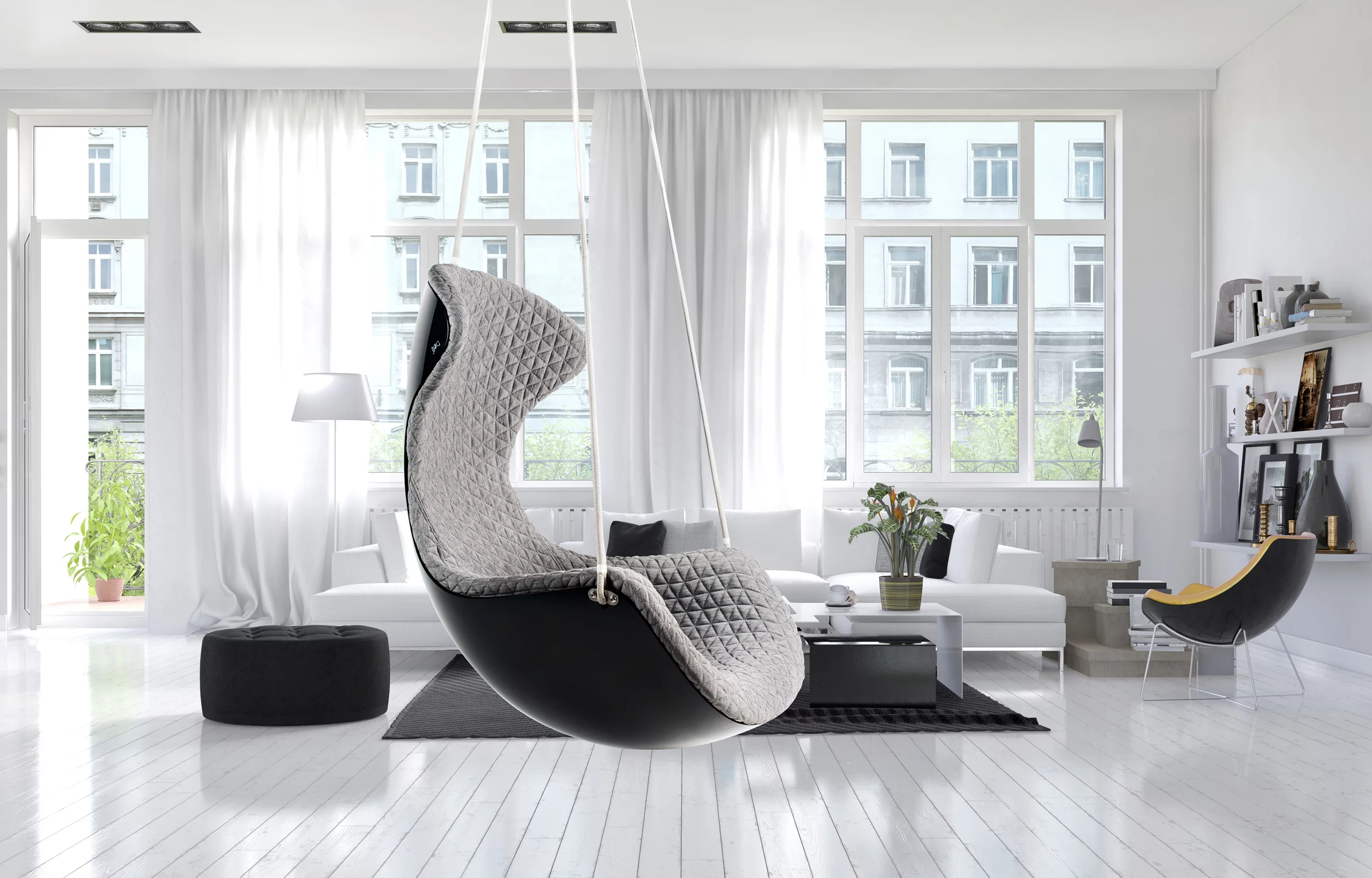 Závěsné houpací křeslo vychází z jednoduchého tvaru vajíčka. Tvoří ho