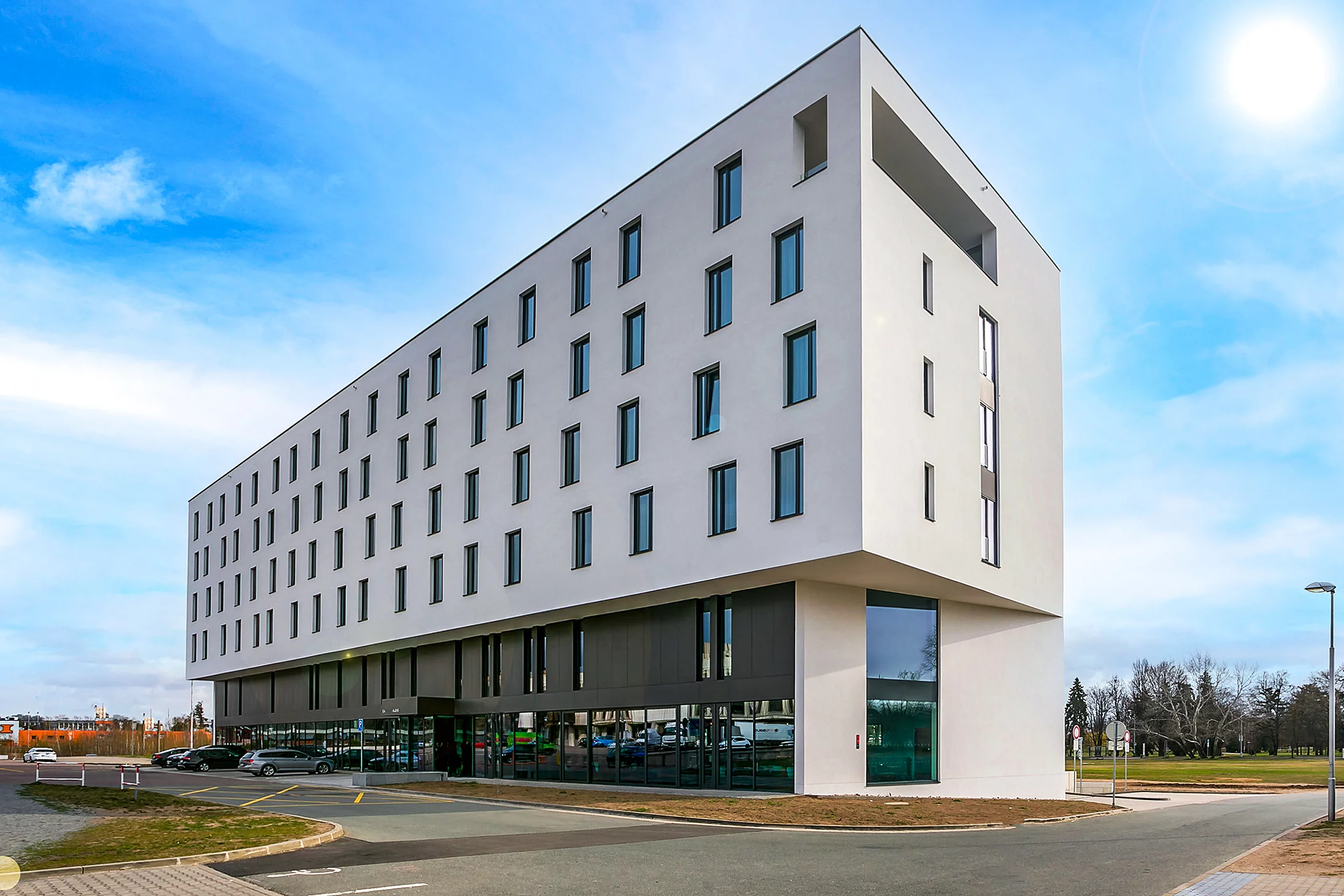 a logotypu hotelu Aldis. Architektura hotelu navazuje na