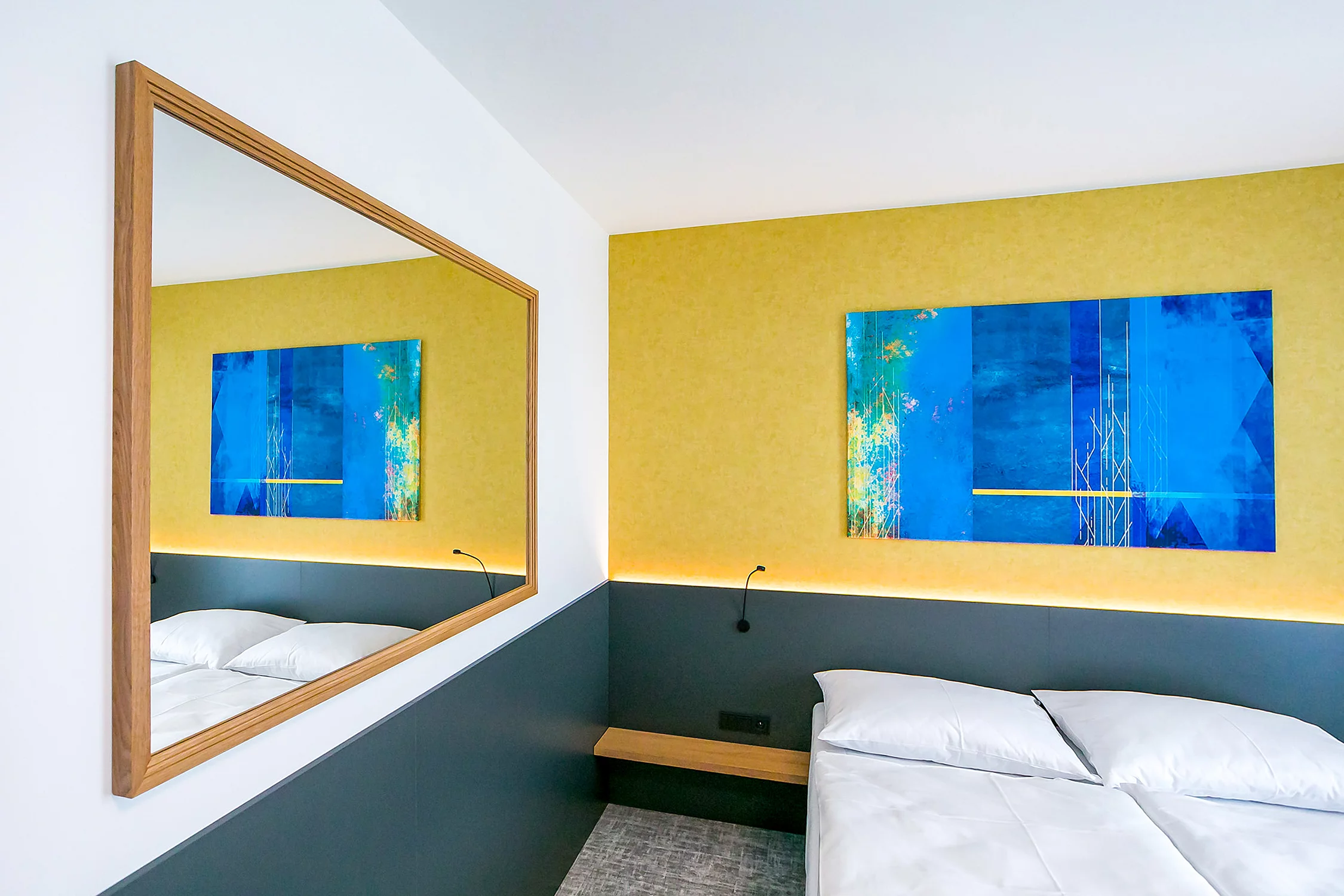 Design baru, tapet, označení pokojů a obrazů na pokojích.