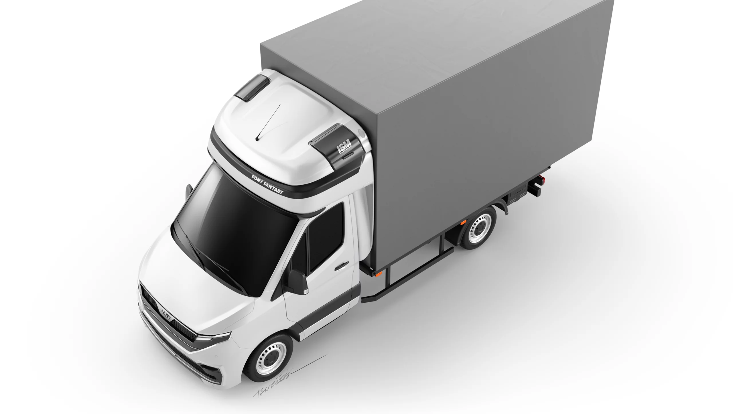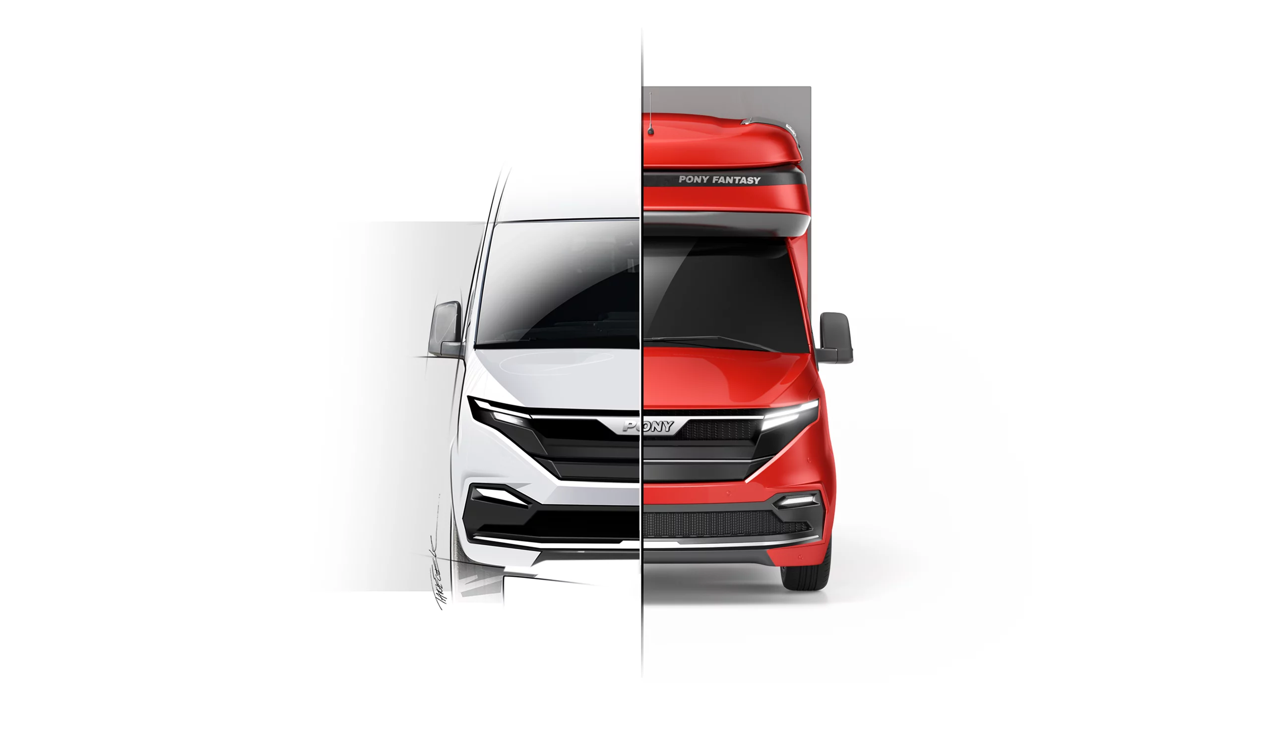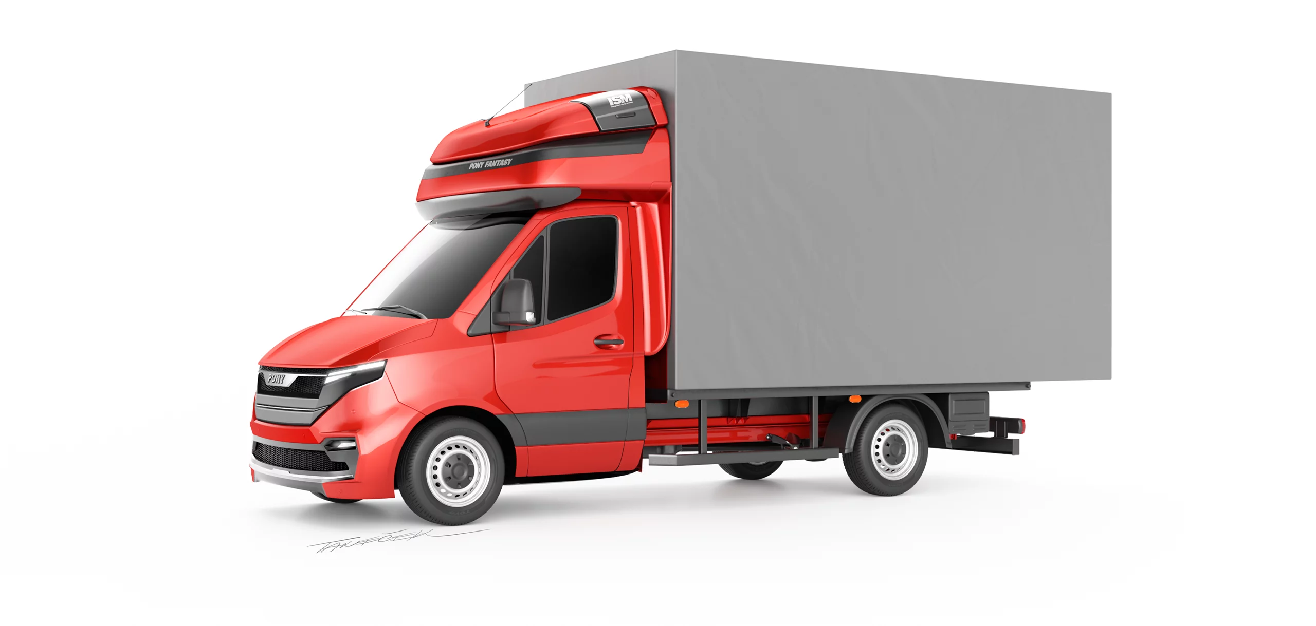 Hlavním motivem designu užitkového vozu je rozměrmá masla s integrovanými tenkými světlomety. Po úvodních skicách a vymodelování tvaru přišly na řadu kavlitní rendery z různých pohledů.