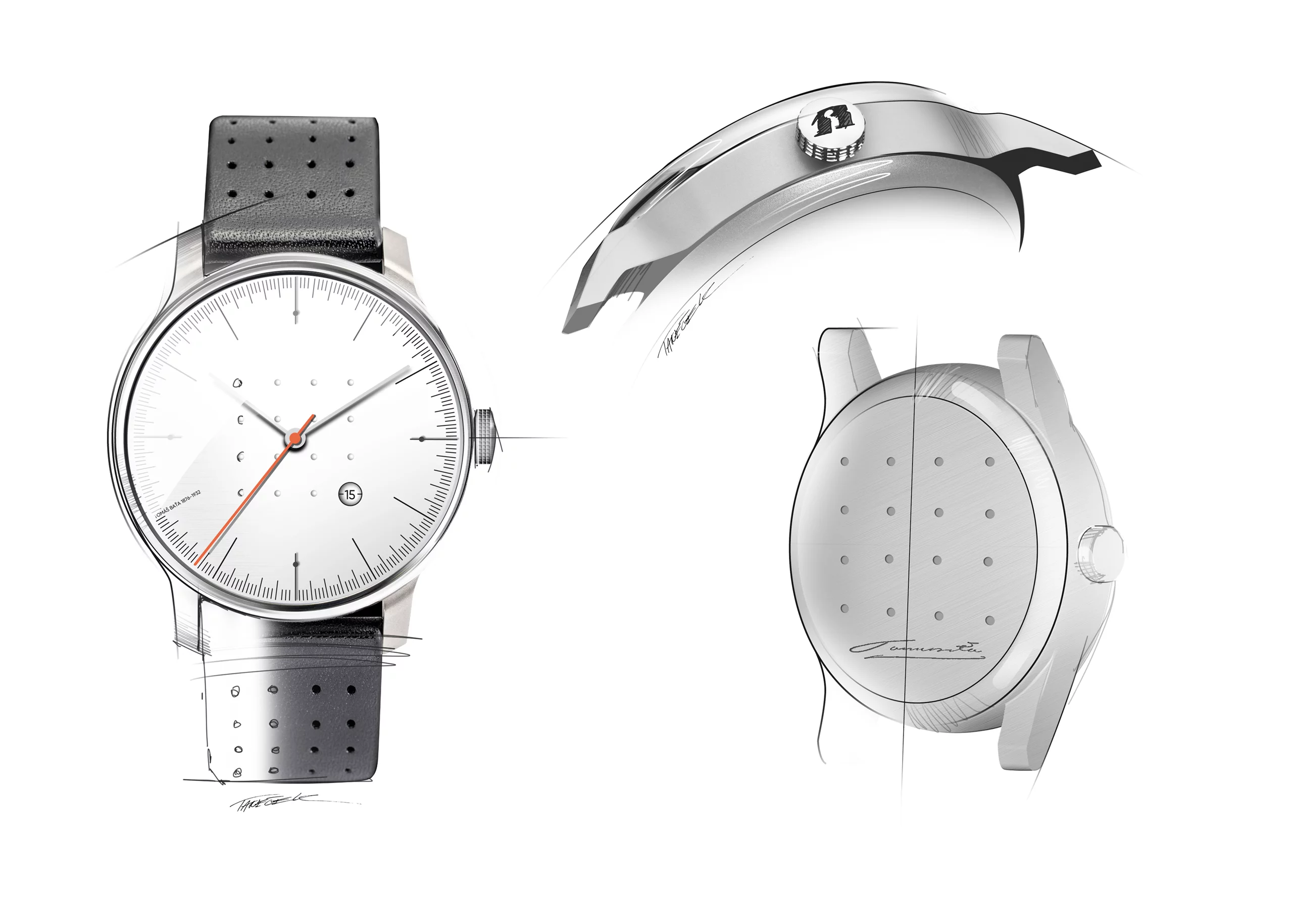 Inspirací při tvorbě těchto hodinek mi byl jednak samotný Tomáš Baťa a jeho přístup k podnikání, ale také samozřejmě samotné město Zlín, což je jeho největší dílo. Cihlově červená je připomínkou typického architektonického prvku „baťova