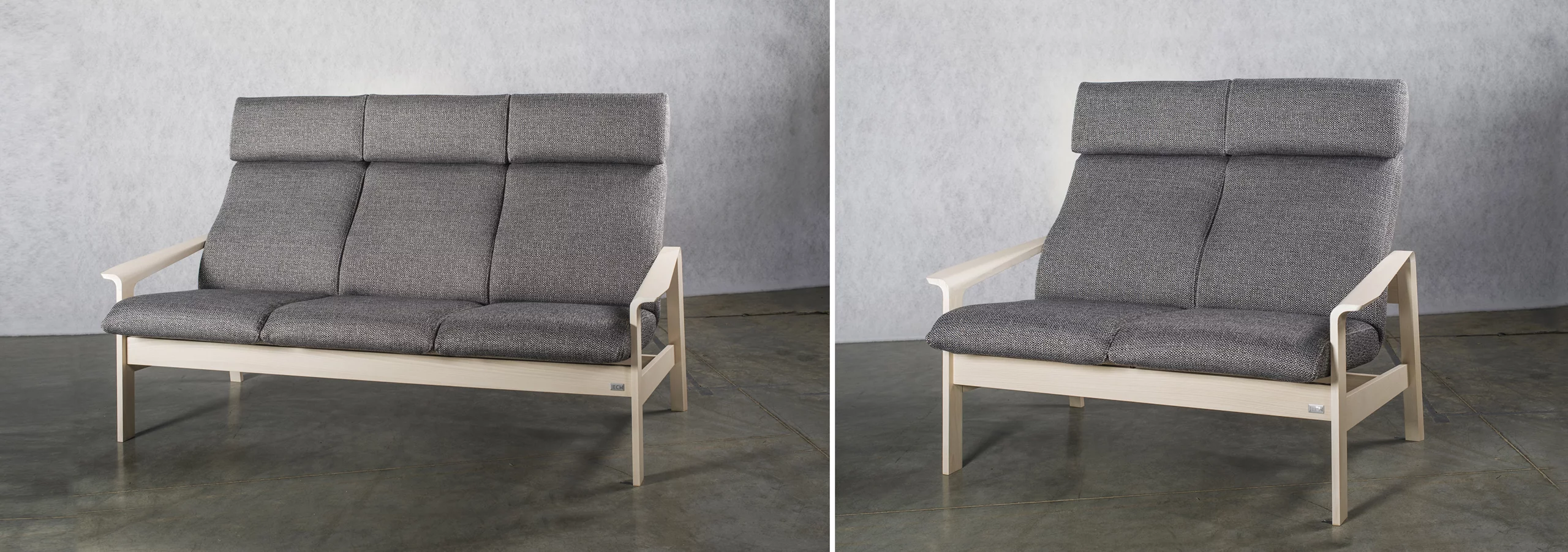 Sedací souprava SIRA. Zadání od majitele společnosti znělo: sedačka skandinávského typu s velkým užitím dřeva v moderních tvarech.