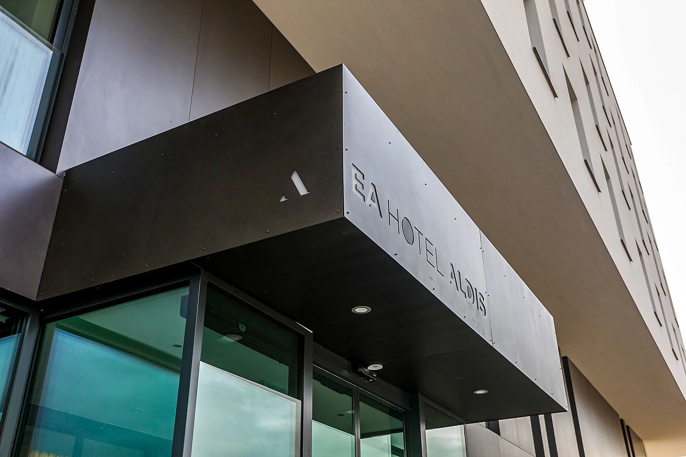 a logotypu hotelu Aldis. Architektura hotelu navazuje na