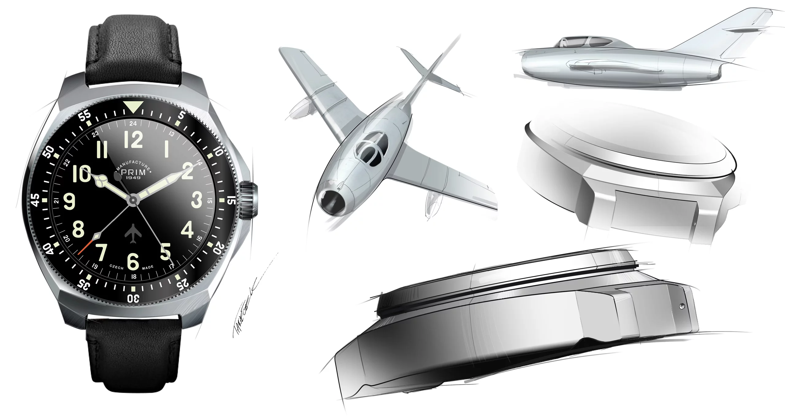 Bylo pro mne velkou ctí spolupracovat na vývoji skutečně prvních českých leteckých hodinek značky PRIM z Nového Města nad Metují. Hodinky z limitované edice PRIM MIG15 jsou prvními leteckými primkami, do jejichž vývoje zasáhli přímo piloti proudových letadel. Poprvé byly na primkách použity dvě lunety, otočné na obě strany. Vnější slouží k odpočtu 60 minut a dají se na ní přehledně měřit technologické časy, nebo časové úseky v navigaci. Vnitřní luneta s vyznačením 24 hodinového číselníku umožňuje rychlé nastavení UTC, tedy jednotného koordinovaného času používaného v letectví. Zářezy na lunetě odkazují na lopatky turbíny proudového motoru.Letecké hodinky musí být odolné a robustní. Vydržet vše, ale zároveň zůstat relativně lehké. Při přetížení je znát každý gram navíc. Ideálním materiálem se proto stal titan. Korunka má tvar vzduchového otvoru na přídi letadla MIG15. Detail, který dodal letounu jeho charakteristický vzhled. Část materiálu korunky pochází přímo ze stíhačky a každá je tedy jedinečným originálem.