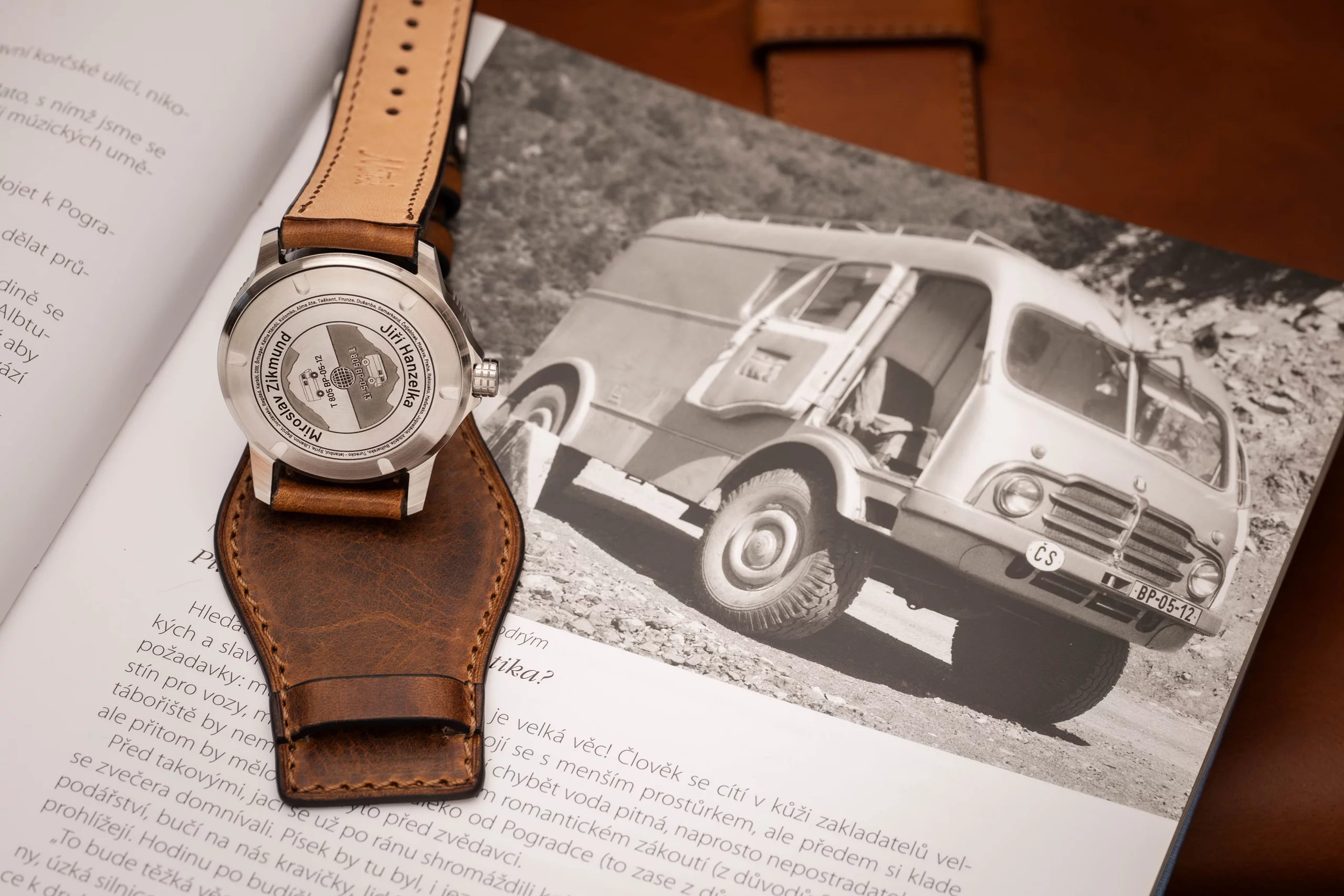 Pro návrh těchto hodinek jsem navštívil nové muzeum nákladních automobilů v Kopřivnici, kde jsou jako exponáty obě Tatry 805. s nimiž cestovatelé Zikmund a Hanzelka podnikli svoji druhou výpravu do Asie. Detaily na vozidlech byly pro mě velkou inspirací a snažil jsem se je do designu aplikovat. Drážky