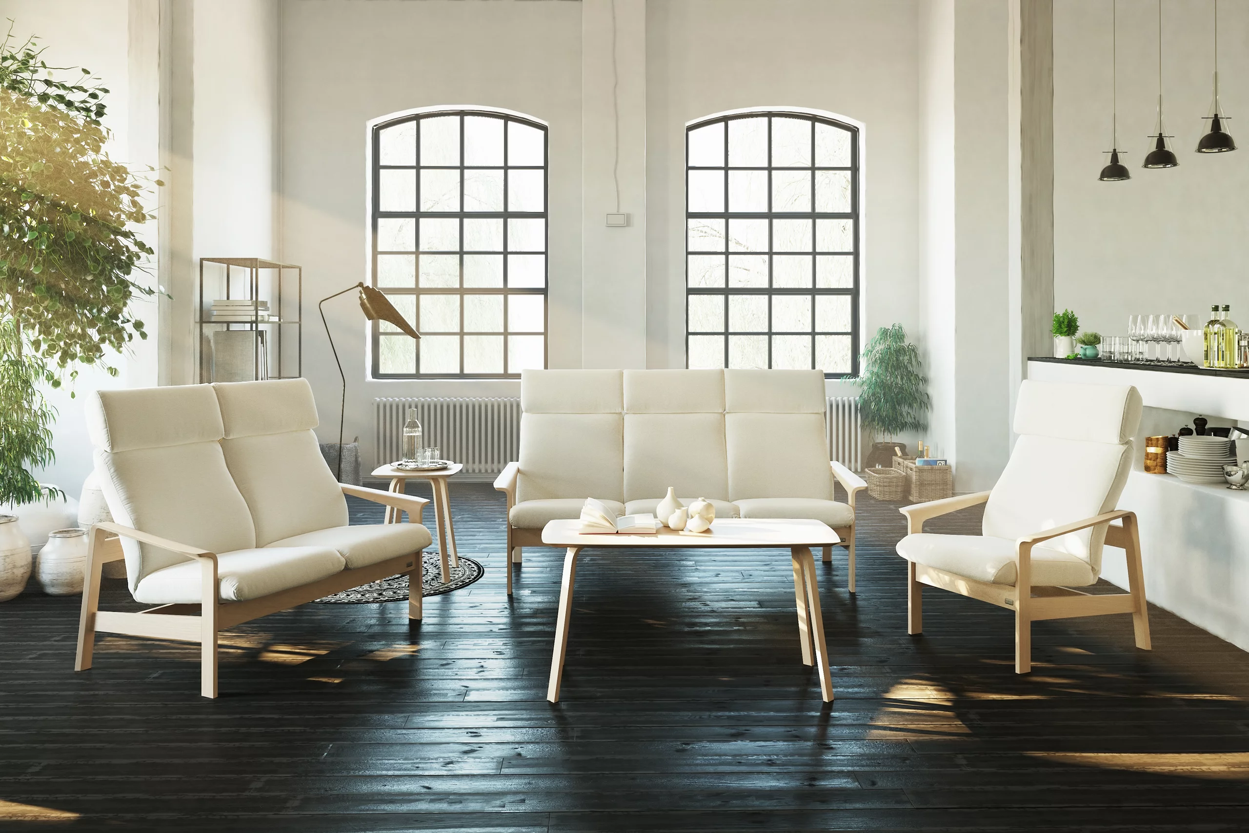 Sedací souprava SIRA. Zadání od majitele společnosti znělo: sedačka skandinávského typu s velkým užitím dřeva v moderních tvarech.
